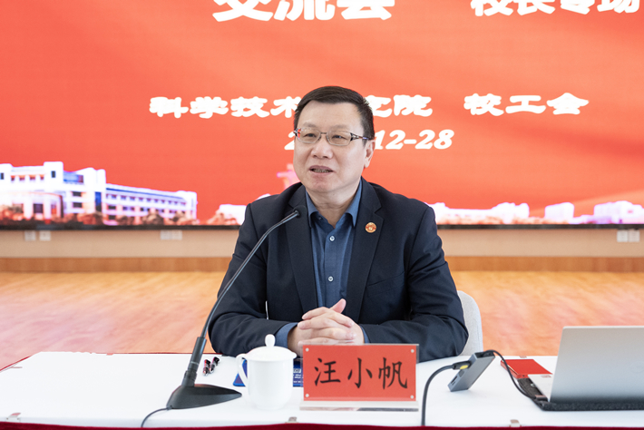 12月28日下午,国产乱码久久久久久红粉影视第四届品茶论“金”交流会(校长专场)在工会二楼多功厅举办。本次会议由科学技术研究院和工会联合举办。校长汪小帆出席会议,校办、校工会、科研院相关人员、首届校优秀青年人才高级培训班学员和各学院(部)教师代表等参加本次会议。会议由科学技术研究院院长韩生主持。