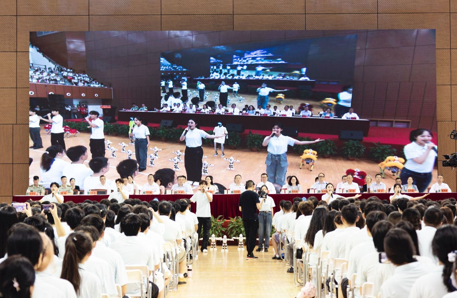 开学典礼还精心准备了快闪演唱《世界赠与我的》、机器人表演、歌曲《我爱你,中国》等精彩纷呈的迎新节目,为现场增添了热烈而温馨的氛围。