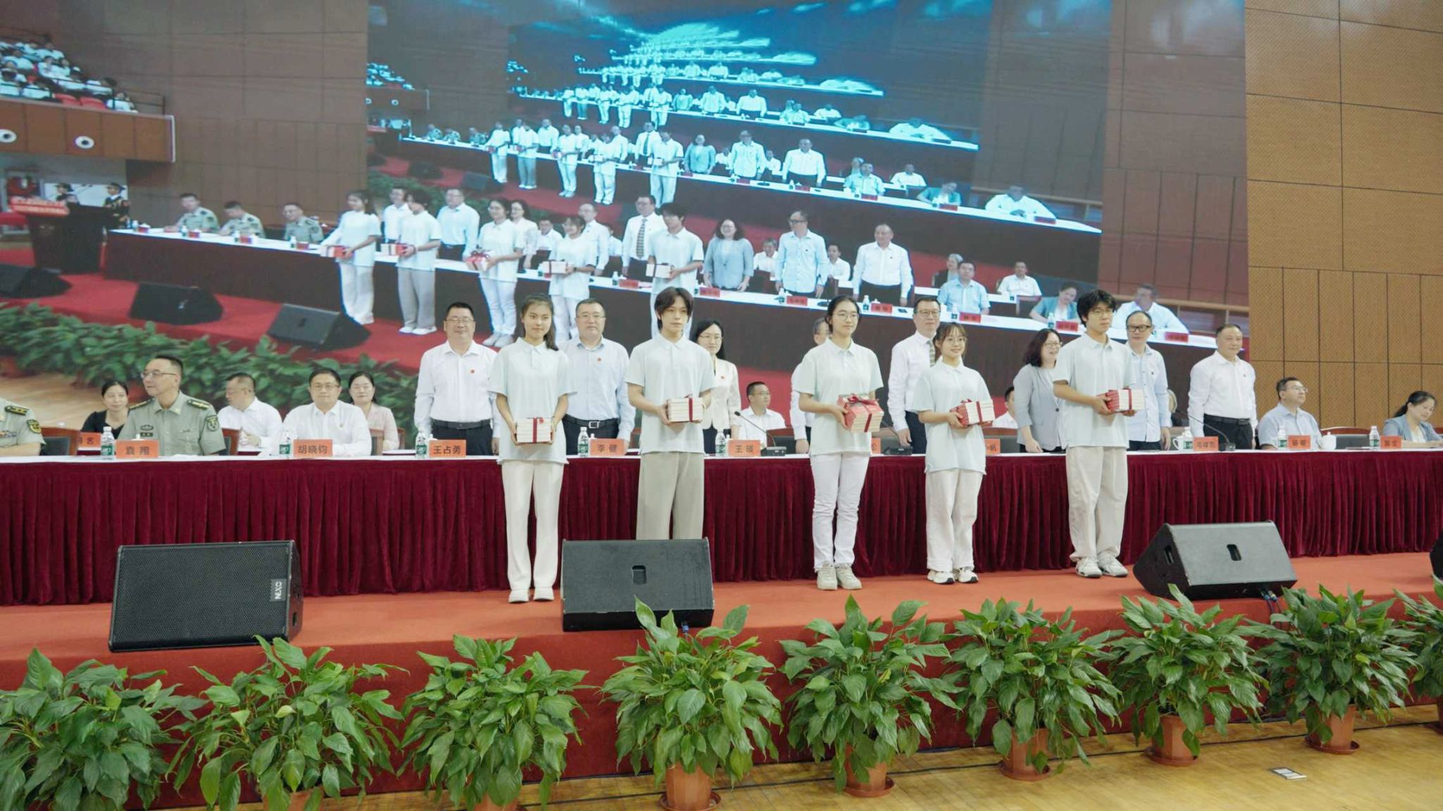 郭庆松及全体校领导向新生代表赠送了《习近平与大学生朋友们》书籍,勉励新生从书籍中汲取力量,在实践中学以致用、砥砺奋斗,成长为堪当大任的时代新人。